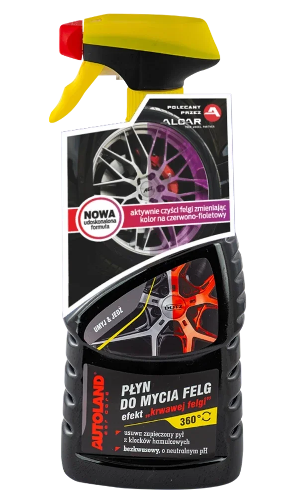 Newly formulated, colour changing wheel cleaner which turns red as it starts dissolving dirt, brake dust and road contamination. Safe for all elements of brake systems, chrome, steel and alloy wheels. Does not cause discoloration, streaks and stains. Neutral pH, acid free.